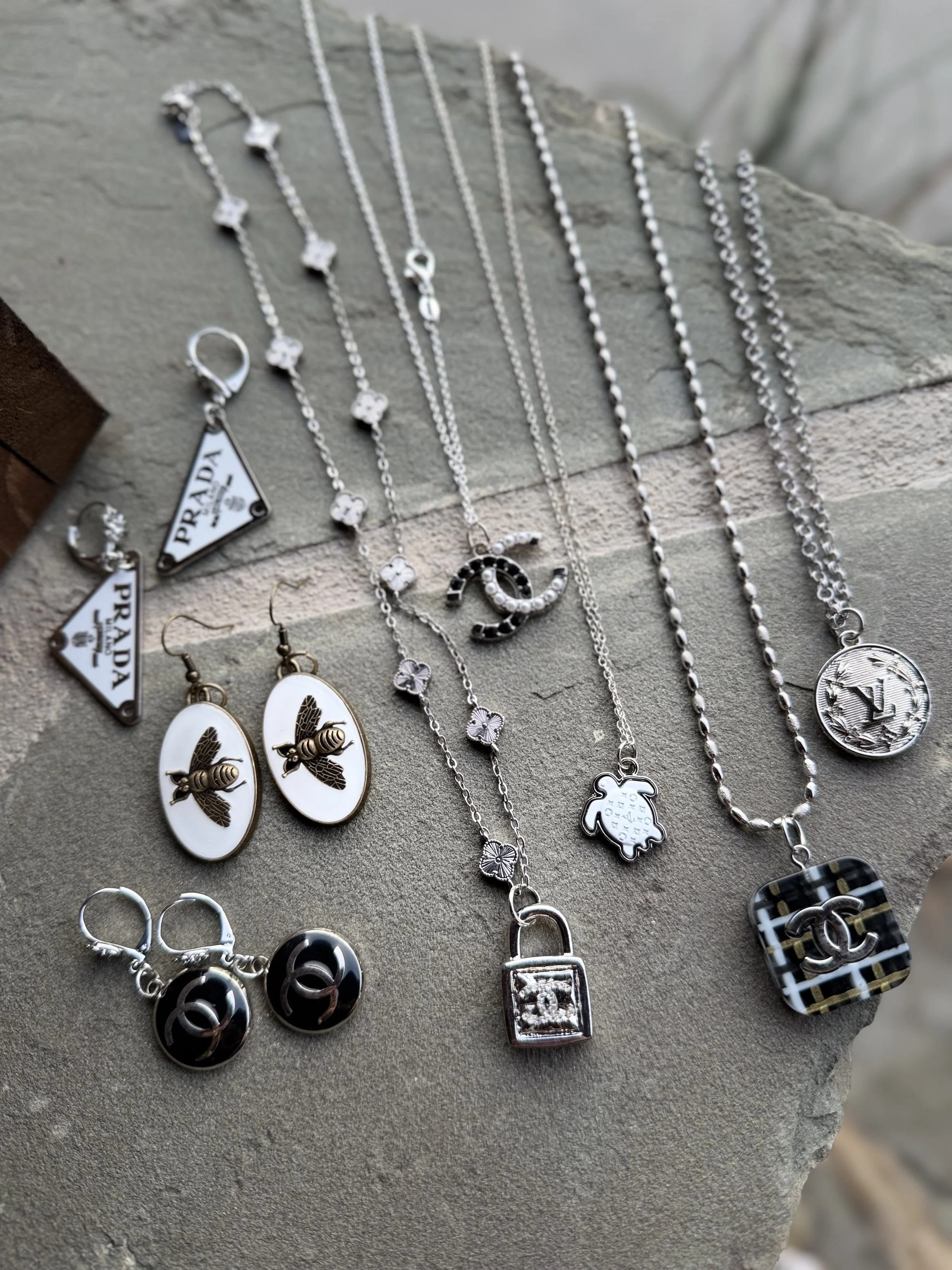 I also hand select every authentic luxury piece that have been taken from various parts of clothing, buttons, bags, jewelry, zippers and even shoes to recreate beautiful showstoppers!